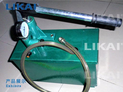 本公司生產(chǎn)的手動試壓泵是測定受壓容器設備的主要測試儀器,工作壓力可達800kg/cm2.。在0~800kg/cm2以內(nèi)任何階段的壓力來作水壓試驗,廣泛用于,化工、建筑、水暖、石油、煤炭、冶煉、科學系統(tǒng)、造船等行業(yè)。專門試驗各種受壓容器和受壓設備、管道、閥門、橡膠管件及其他受壓裝置進行受壓之用。